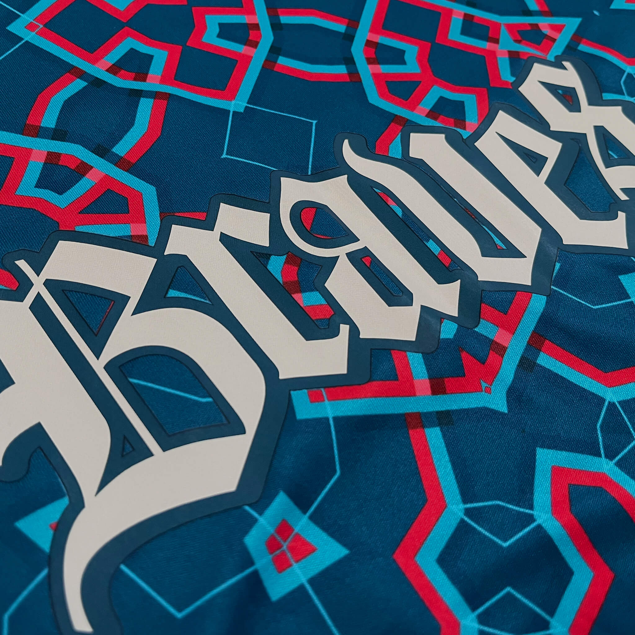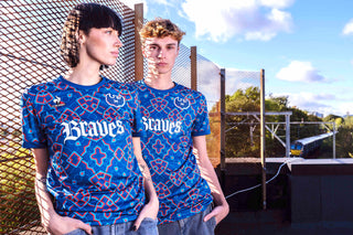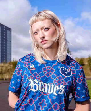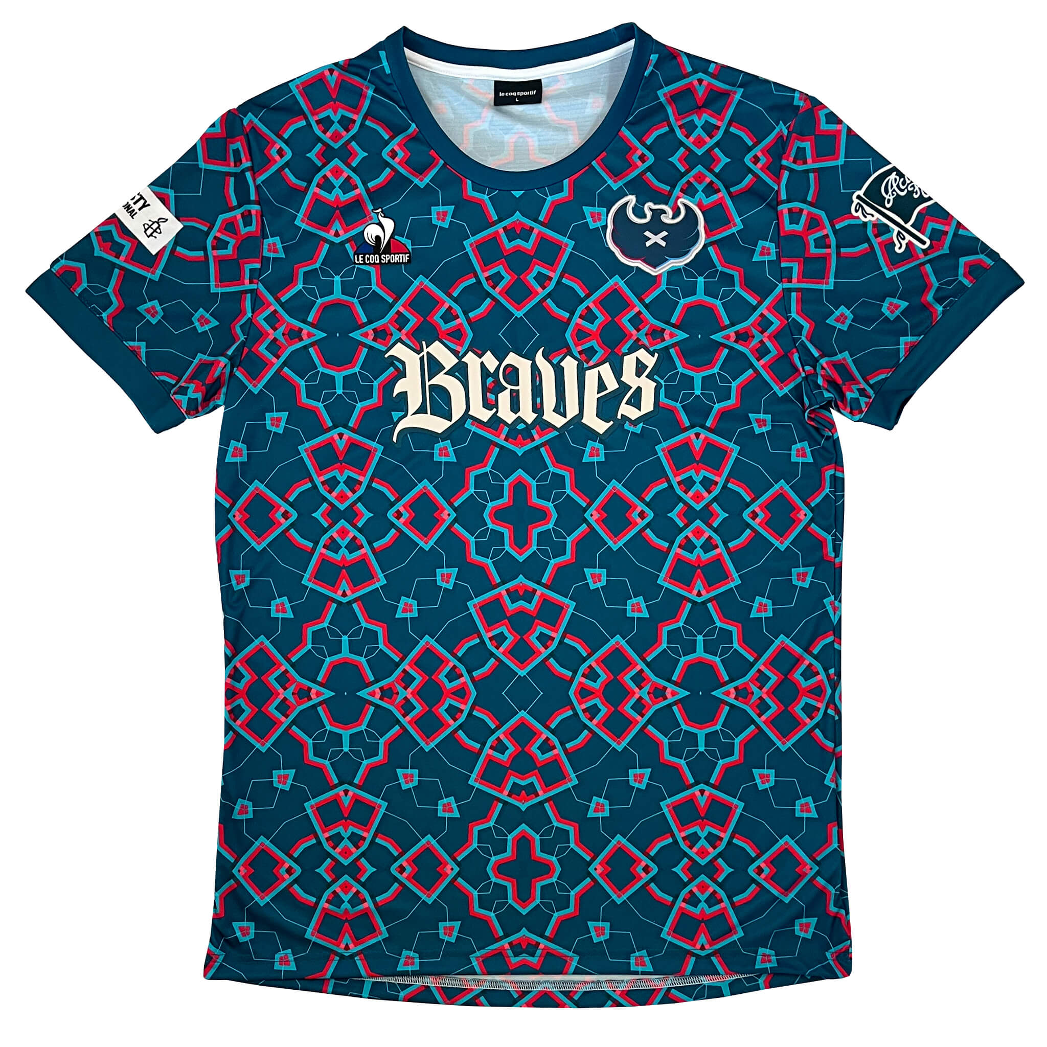 The Braves home shirt is built from a re-engineered “French tartan” — a kaleidoscopic mash of Scottish grit and Parisian flair, honouring the club’s origins as a youth academy bridging the two.